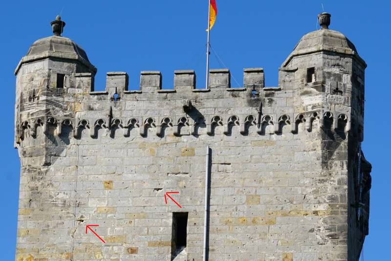 An der Ostseite des Pulverturms stecken noch heute zwei Kanonenkugeln - Bild: AB