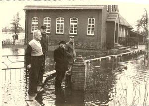 Lehrer Spangemacher (im Vordergrund) auf einem Bild aus dem Jahr 1960 vor der Kath. Volksschule Laar