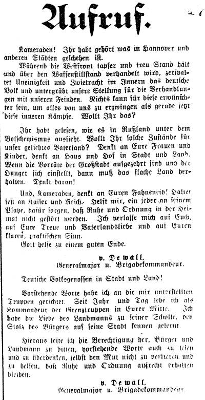 BZ- Nr. 90 -09.11.1918 Aufruf des Arbeiter- und Soldatenrates Schüttorf
