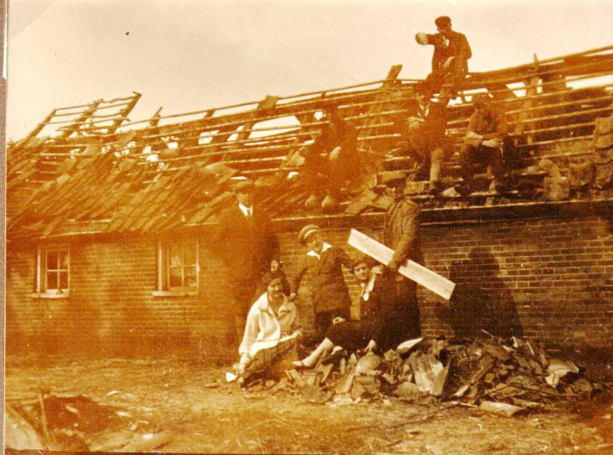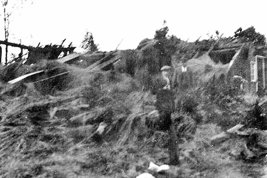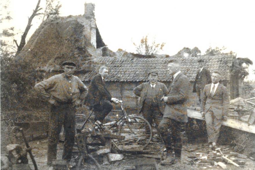 Deutlich schlimmer wurde die Gemeinde Esche am 1. Juni 1927 betroffen. Ein schwerer Wirbelsturm, der um vier Uhr nachmittags ausbrach, richtete innerhalb von 2 Minuten große Schäden an. "Acht Gebäude waren fast gänzlich zerstört und neun mehr oder weniger beschädigt," berichtet die Schulchronik. Sämtliche Bäume, die in der Schneise des Sturms gestanden hatten, wurden entwurzelt oder auf der Hälfte des Stammes abgedreht.