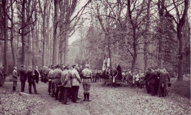 Anschließend begaben sich alle in den Lager Busch, wo ein Feldgottesdienst stattfand. Nachmittags um 3 Uhr versammelte sich die Gemeinde in der Milchweide zum Durchzug durchs Dorf. Die Kinder der Oberstufe mit geschmückten Rädern bildeten die Spitze. Nach dem Durchzug fand ein gemütliches Beisammensein in der Schraderschen Gastwirtschaft statt. Abends um 8 Uhr hörte man die Übertragung vom Tempelhofer Feld mit der Rede Adolf Hitlers. Abschließend gab es ein Feuerwerk.