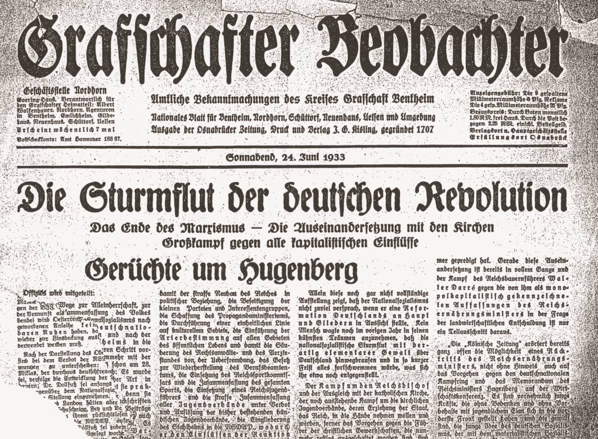 Dauerhafter und wesentlich erfolgreicher war dann eine andere Initiative. Die auflagenstarke bekannte rechtsliberale und kulturprotestantische „Osnabrücker Zeitung“ aus dem Verlag Kisling schwenkte im Frühjahr 1932 von der „Deutschen Volkspartei“ zur NSDAP über. Diese Zeitung, die vom gehobenen evangelischen Bürgertum im Bentheimer Land bezogen wurde, fungierte seitdem, so die Einschätzung von Gerd Steinwascher in seinem Beitrag zur Osnabrücker Stadtgeschichte als wichtiger Milieuöffner für die NSDAP in Osnabrück, was für die Grafschaft wohl gleichfalls zutreffen wird.
