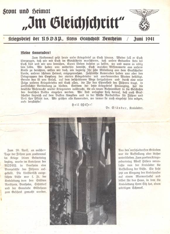 Die Titelseite des Grafschafter NSDAP-Kriegsbriefes „Im Gleichschritt“ vom April 1941.