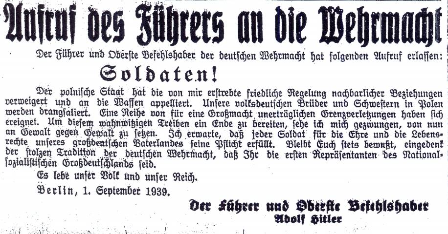 Propagandalügen und der Kriegsbeginn 1939