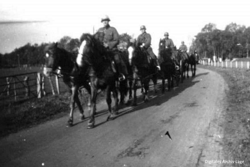 Der Schulchronik Scheerhorn aus der Niedergrafschaft ist zu entnehmen: Im Febr. 1940 kommt dann plötzlich viel Leben und Betrieb in die Ortsgruppe und auch nach Scheerhorn und Berge, als eine Schwadron Kavallerie hier einquartiert wird. Fast jedes Haus hat „seinen“ oder „seine“ Soldaten u. ihre Pferde. …. Jung und Alt nahmen natürlich an dem Leben u. Treiben der Soldaten regsten Anteil.