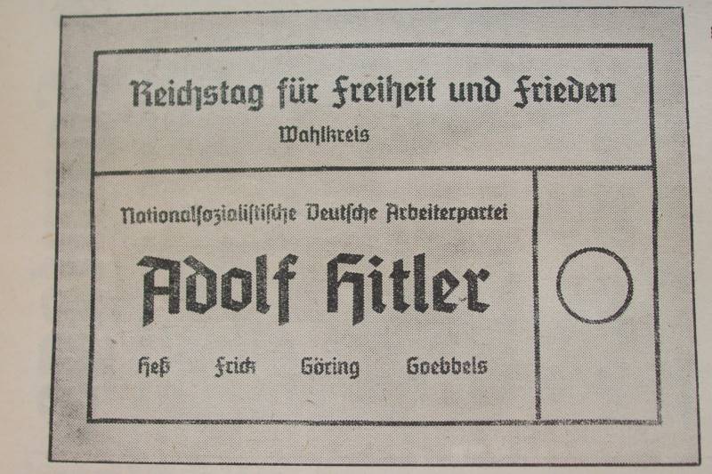 Auf dem Stimmzettel standen nur die Namen der ersten Bewerber der NSDAP-Wahlkreisliste und ein Kreis zum Ankreuzen. Wer sich einer Wahl der NSDAP verweigern wollte, hatte nur die Möglichkeit, ungültig zu wählen oder sich der Wahl zu entziehen. Daher setzte schon früh eine Propaganda zur Wahlteilnahme ein, in der alle NS-Verbände einbezogen waren.