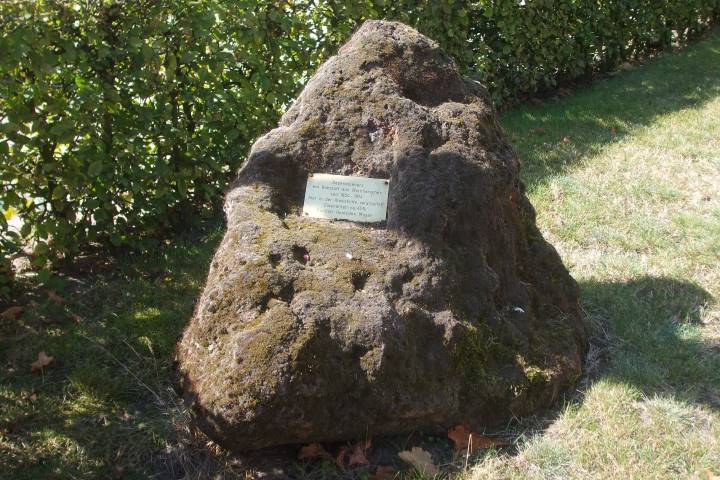 Ein Raseneisenstein in Wietmarschen vor dem Mühlenstumpf - Bild: HL