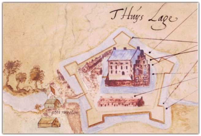 Burg Lage um 1620 - Bild: Allgemeen Rijksarchief Den Haag