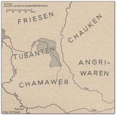 Germanische Stämme im Umkreis der heutigen Grafschaft etwa 100 n. Chr. - Abb. Heimatverein GB