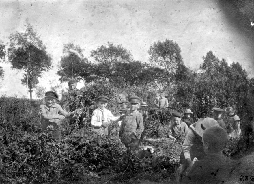 Schüler der Altendorfer Schule bei der Brennnesselernte im Juli 1918 - Bild: Schulchronik Altendorfer Schule